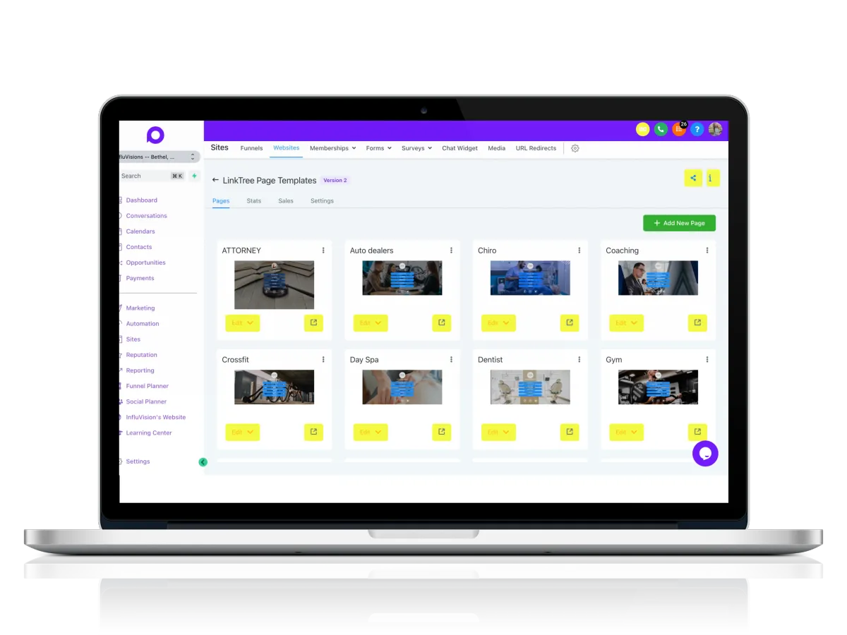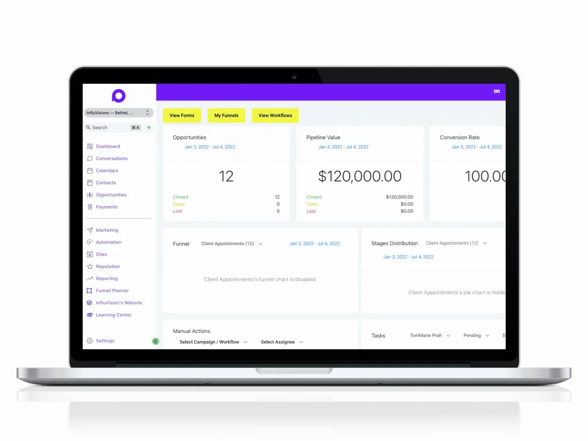 Build forms and funnel pages to capture leads, automated SMS, email, phone calls, voicemails, and Facebook Messages. Nurture leads through custom pipelines, converse with leads & clients via social media platforms and other ways to communicate all in one stream, and more!