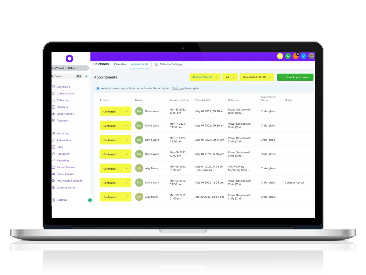 Intelligent appointment automation system reminds and reschedules appointments automatically. No more chasing around clients and leaving money on the table.